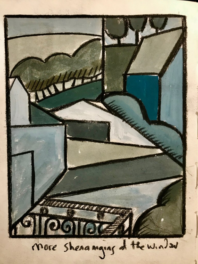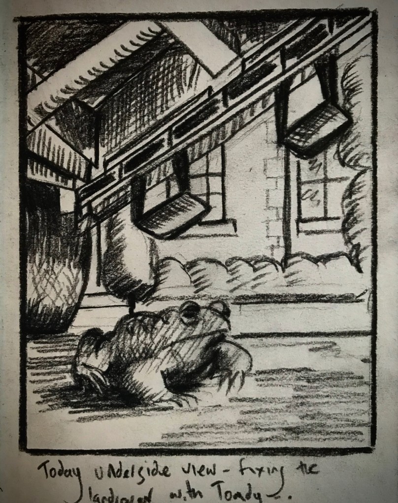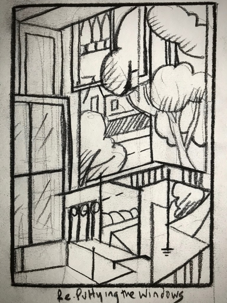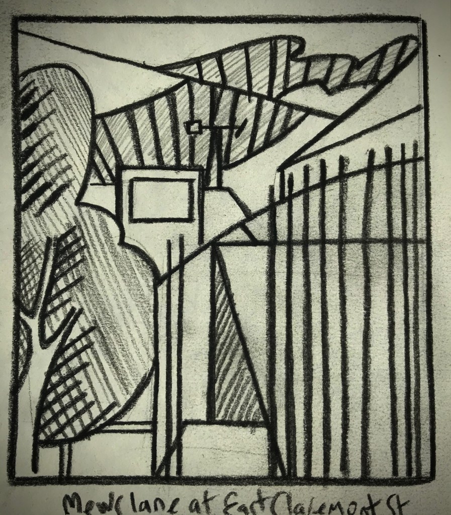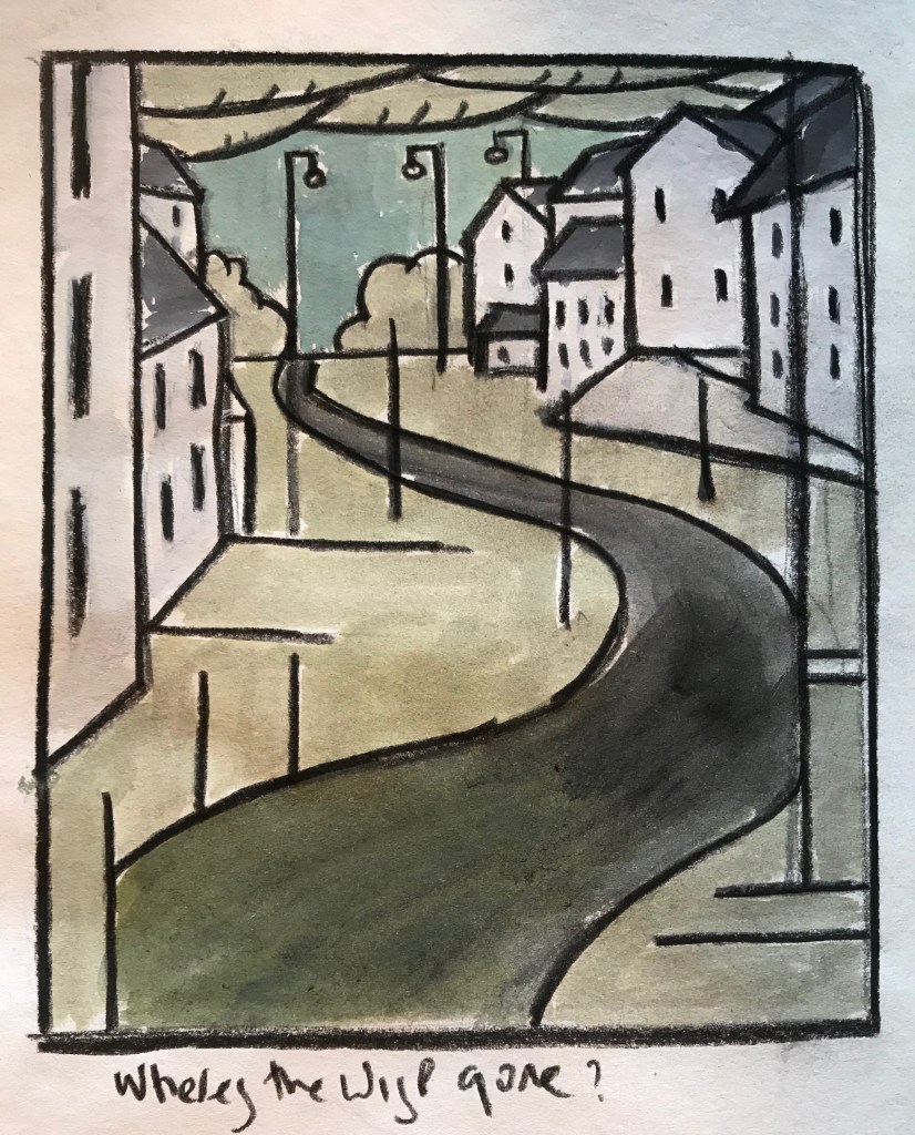 Some days were better than others. Sometimes I had a few drawings for that day and so a decision had to be made. Little surprises, when thinking about what inspires an image that I wanted to draw but didn’t feel I could but did it anyway, these some of my favourites – for example, the wee man welding the railings in Drummond Place who somehow managed to be wearing clogs in the image…I don’t know why…but l liked it.