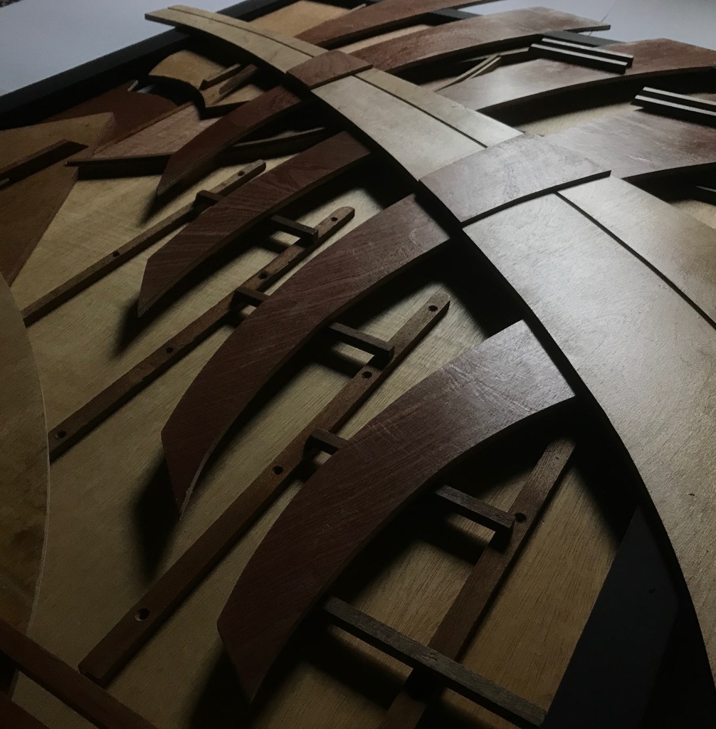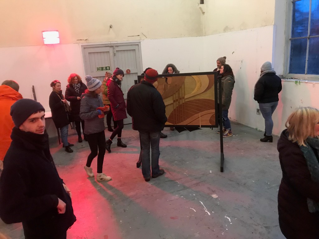 My idea was to make a two-sided work that could be suspended from the rafters of the large coachhouse building. The ability to walk around this relief was one of the main aspects of the work. It consisted of two back to back constructions based on the same theme – one side was an abstracted view of the shoreline at Arbroath and the other a more granular, axonometric type construction of the same view.
