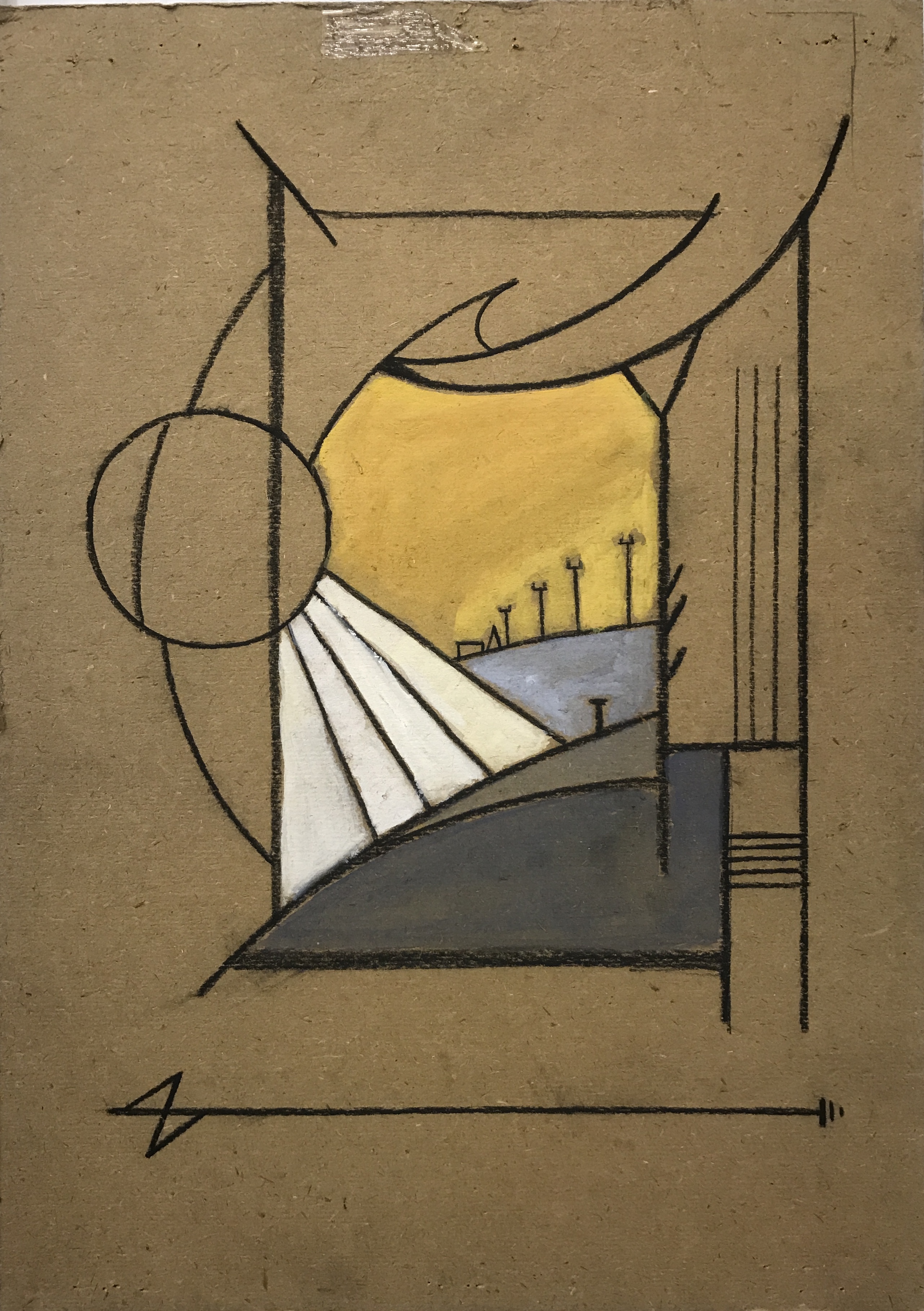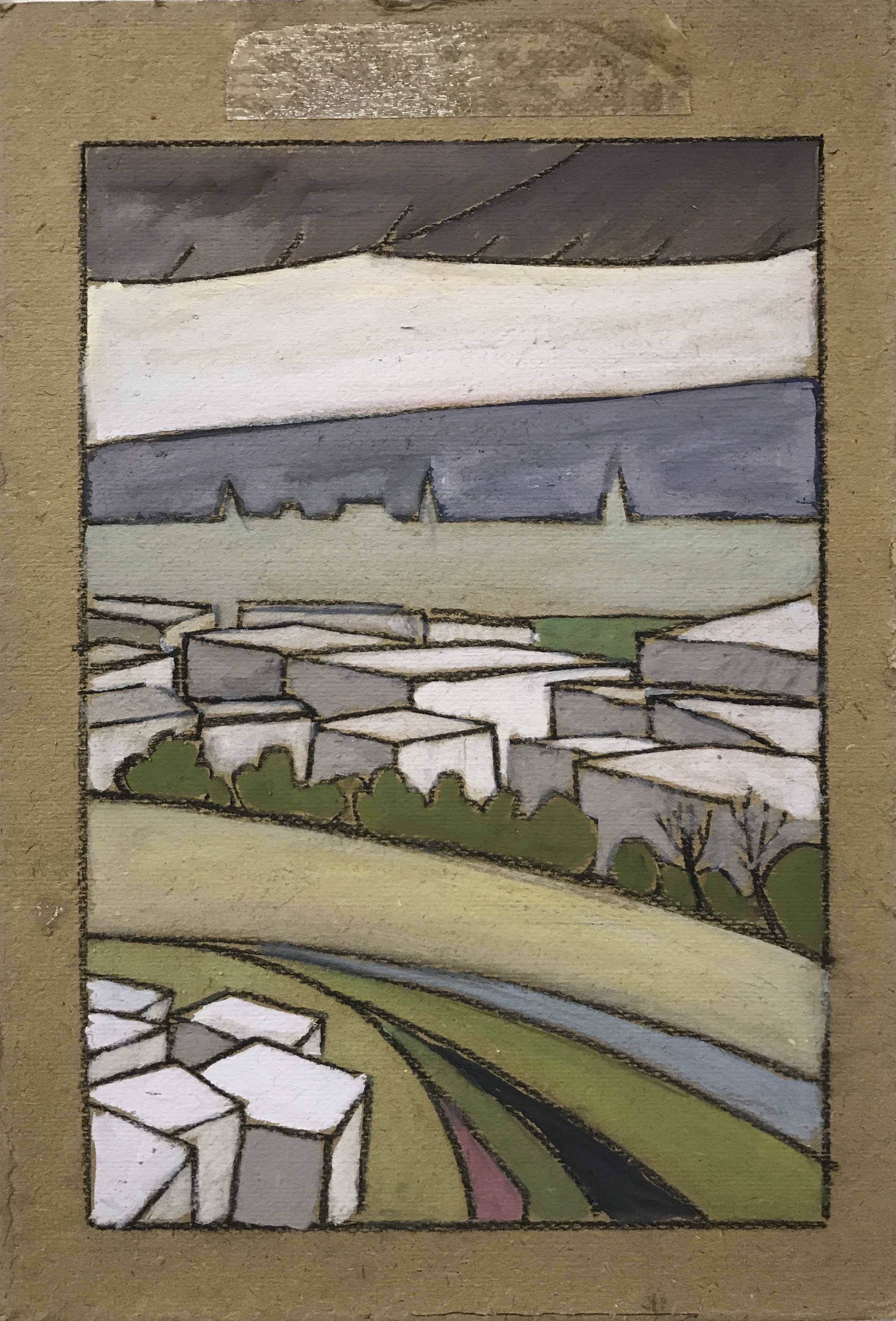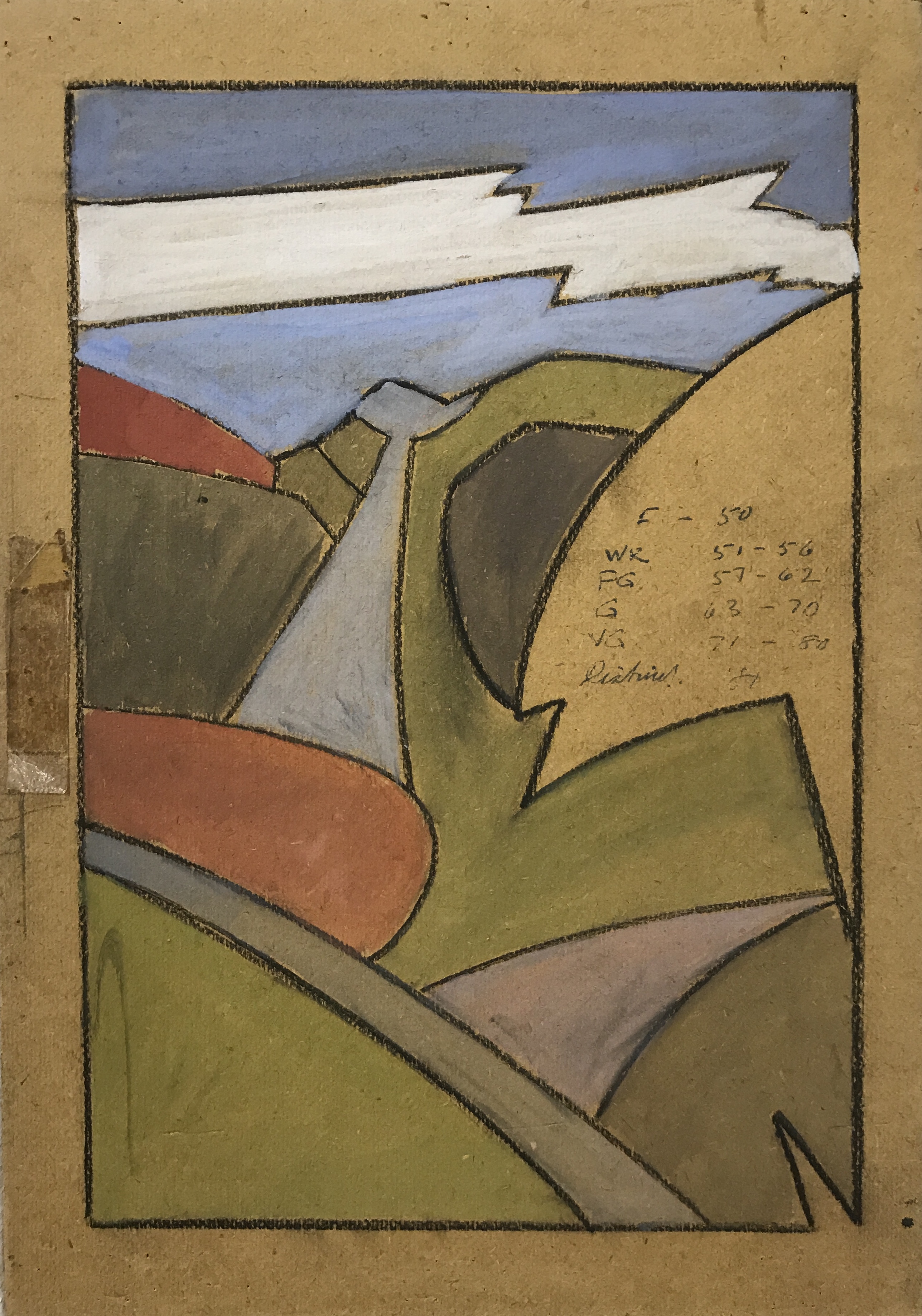 Series of abstract landscapes on hardboard clipboards found in ECA 24cm x 34.5cm charcoal and gouache, 2018.